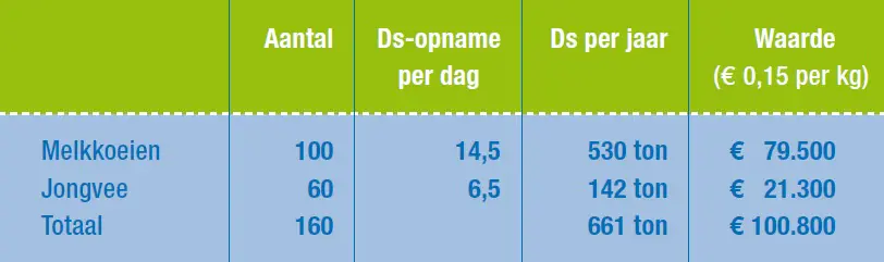 Tabel 1 Waarde van ruwvoer op een melkveebedrijf met 100 melkkoeien en 60 stuks jongvee