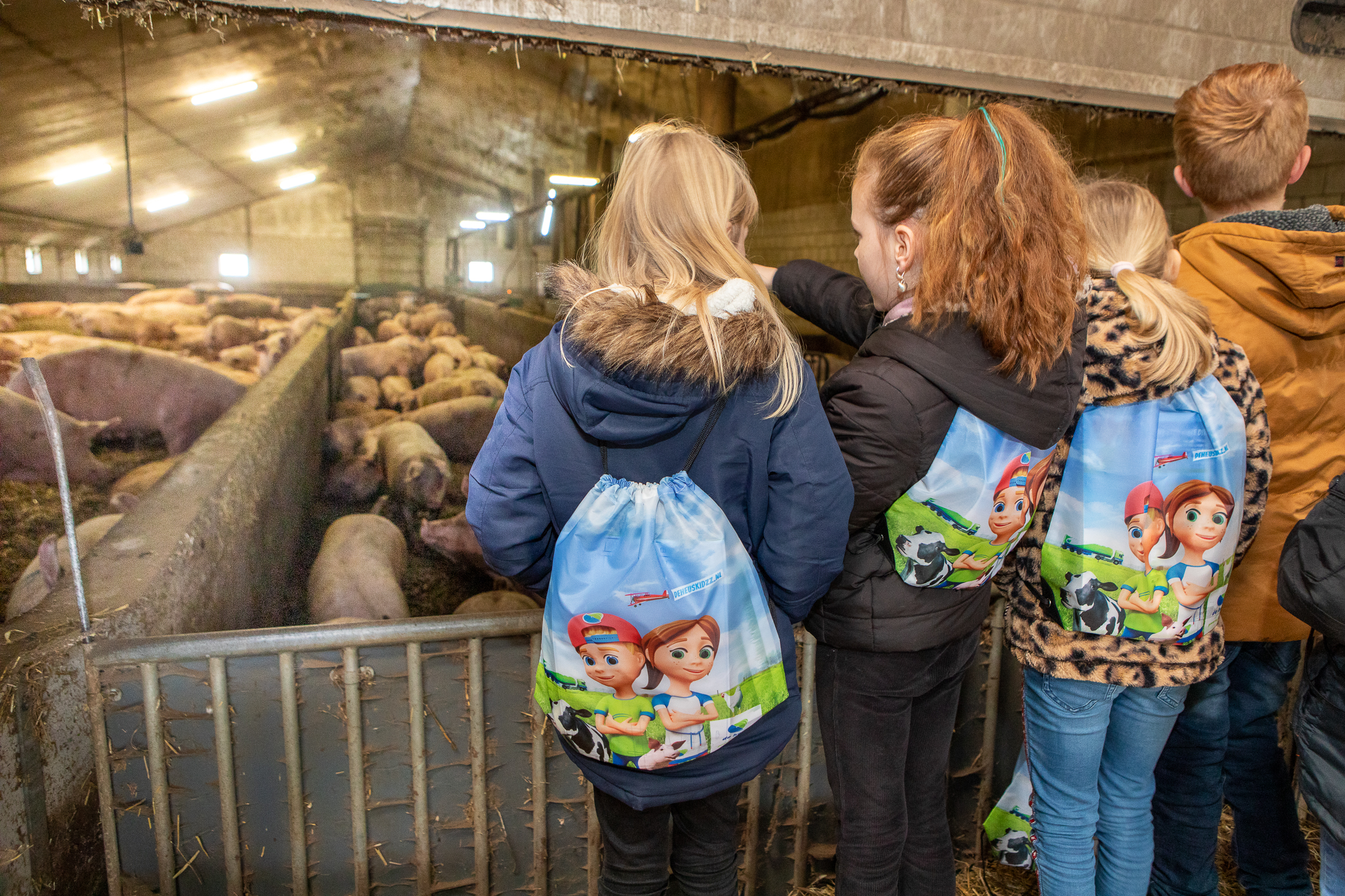 Basisschoolkinderen genieten van rondleiding op boerderij