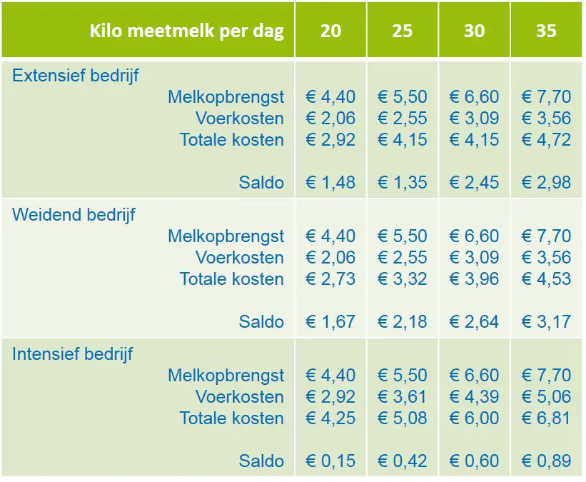 De boodschap die we u mee willen geven: houd de vinger aan de pols rondom het management op uw bedrijf, zorg dat de technische resultaten goed blijven en ga of blijf rekenen met saldo per koe en stuur daar op.