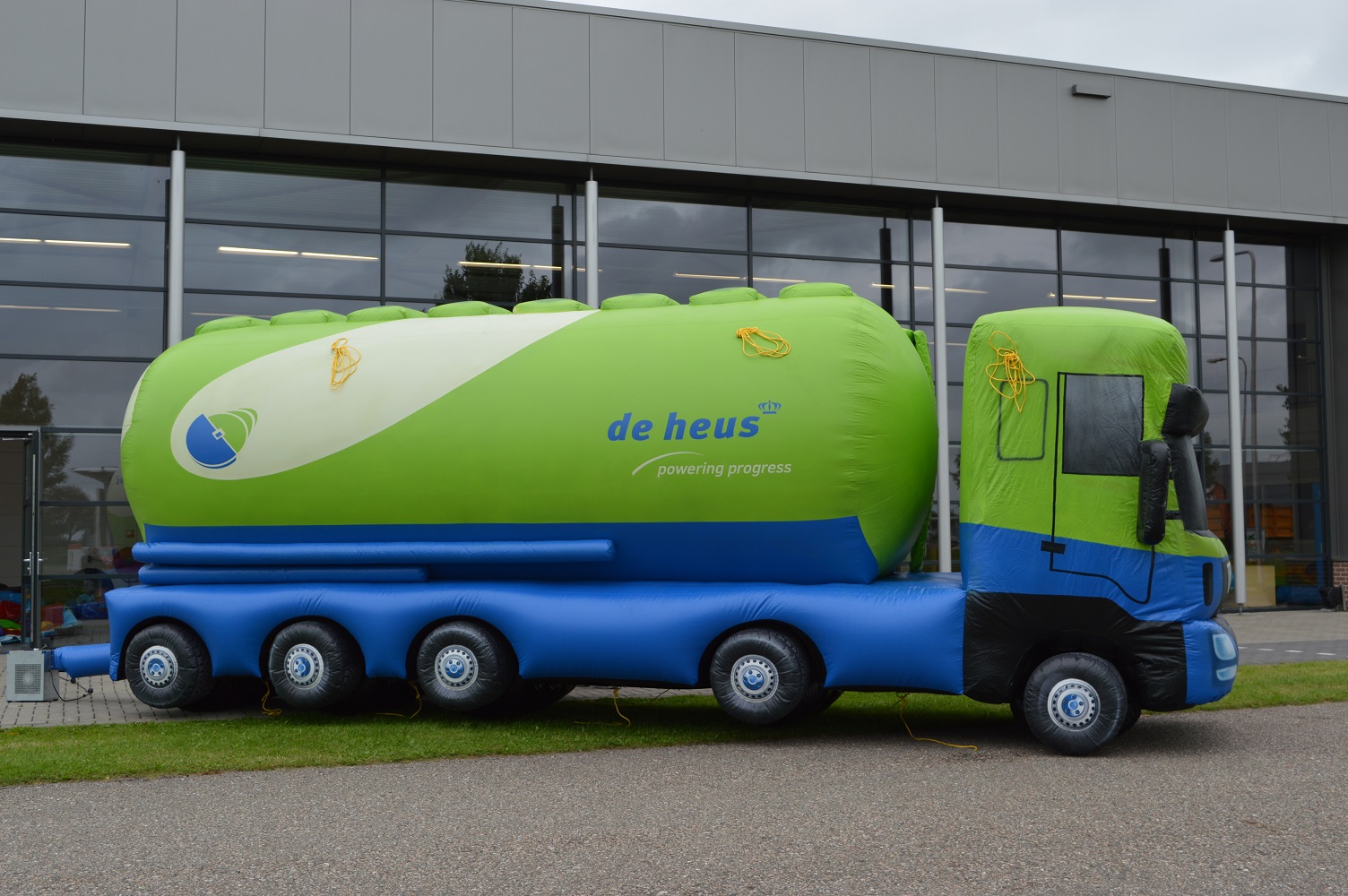 Wist u dat De Heus naast de bulkwagens en de zakgoedwagens tegenwoordig ook een echte ‘blaaswagen’ heeft? U komt hem tegen op Open Dagen, bij beurzen of tentoonstellingen. Een heuse opblaasbare bulkwagen!