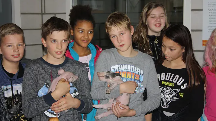 De kinderen, en hun ouders, kregen een rondleiding op het bedrijf. Ze konden met eigen ogen zien hoe de zeugen door het stro liepen, waar ze geïnsemineerd worden en hoe de biggetjes bij de zeugen liggen. Veel kinderen waren nog nooit op een boerderij geweest of hadden nog nooit een echt varken van dichtbij gezien. Voor hen ging er een wereld open. Zoals altijd was ook dit keer het vasthouden en knuffelen van de kleine biggetjes het hoogtepunt van het bezoek. Niet alleen de meisjes waren weg van de roze diertjes, ook de jongen waren weg van het zachte geknor van de kleine biggetjes.