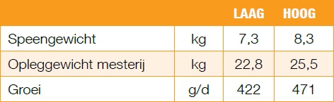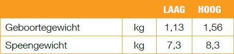 1. Gunstig zijn een hoog geboorte/speengewicht en goede groei tot 23 kg