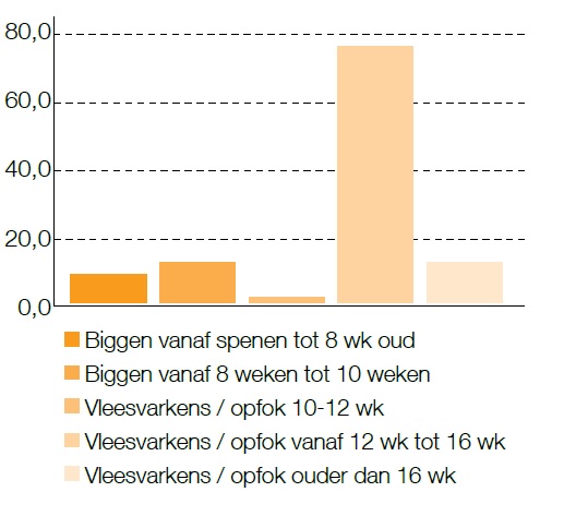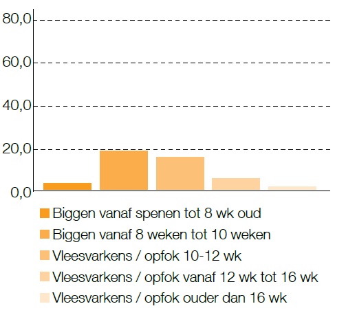 Daarnaast kan ook Circo virus ongunstig werken op darmniveau. Al deze ziekteverwekkers zijn aantoonbaar in mest. Gevoelige biggen zullen door de stress van het transport direct na opleg gemakkelijk diarree vertonen.