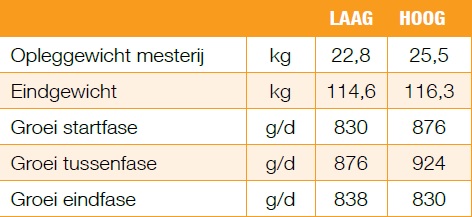 » Tot en met de tussenfase wordt 40-50 g/d hogere groei gezien bij de biggen die een hoog geboorte gewicht hadden. Een oorzaak van het feit dat de groei lager is in de eindfase zien wij in het feit dat er te weinig aminozuren verstrekt zijn in het eindvoer. Betreffend eindvoer zal voldoende nutriënten bevatten voor de ‘tragere groeiers’ maar niet voldoende voor de snelst groeiende dieren.