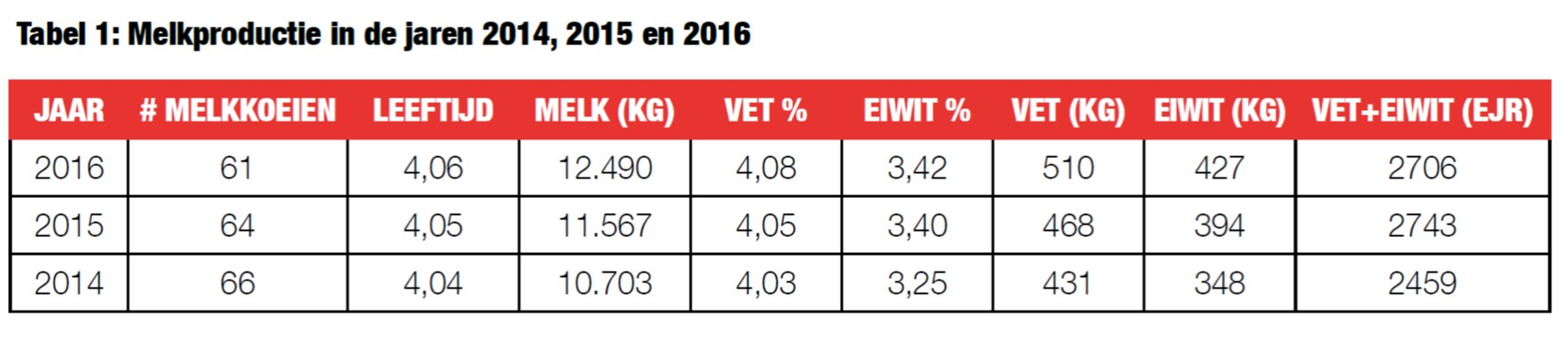 Over de vraag of er voor de toekomst nog een toename in productieniveau te verwachten is, zijn ze duidelijk. “De aanpak in de droogstand behoeft nog meer aandacht. We zijn gestart met een nieuwe aanpak, waarbij we ons richten op een nog hogere drogestofopname van de dieren. Deze aanpak ziet er veelbelovend uit waardoor we verwachten dat we de grens van 13.000 kilo in de toekomst zullen passeren.” Dit jaar zullen Wim en Adrie 770.000 kilo melk produceren op één robot. Het doel is om met weinig koeien een zo hoog mogelijke productie per koe te realiseren.