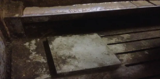 Een stoeptegel voor de trog kan trogbevuiling voorkomen