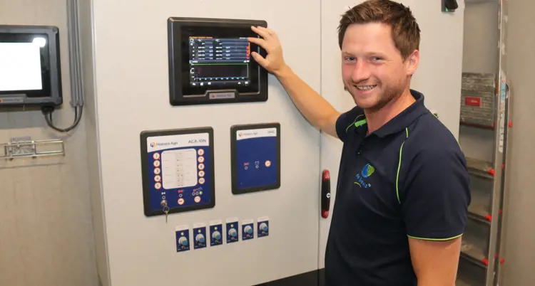 - Klimaat: ventilatoren, inlaatventielen, temperatuurvoelers, koeling en instellingen van de klimaatcomputer worden gecontroleerd. Ook het instellen van ‘dag nul’ in de computer en het invoeren van de juiste diergewichtscurve zijn onderdeel van de check. “We gebruiken de ventilatiecorrecties optimaal. Daar zit enorm veel winst,” vertelt Ariën.