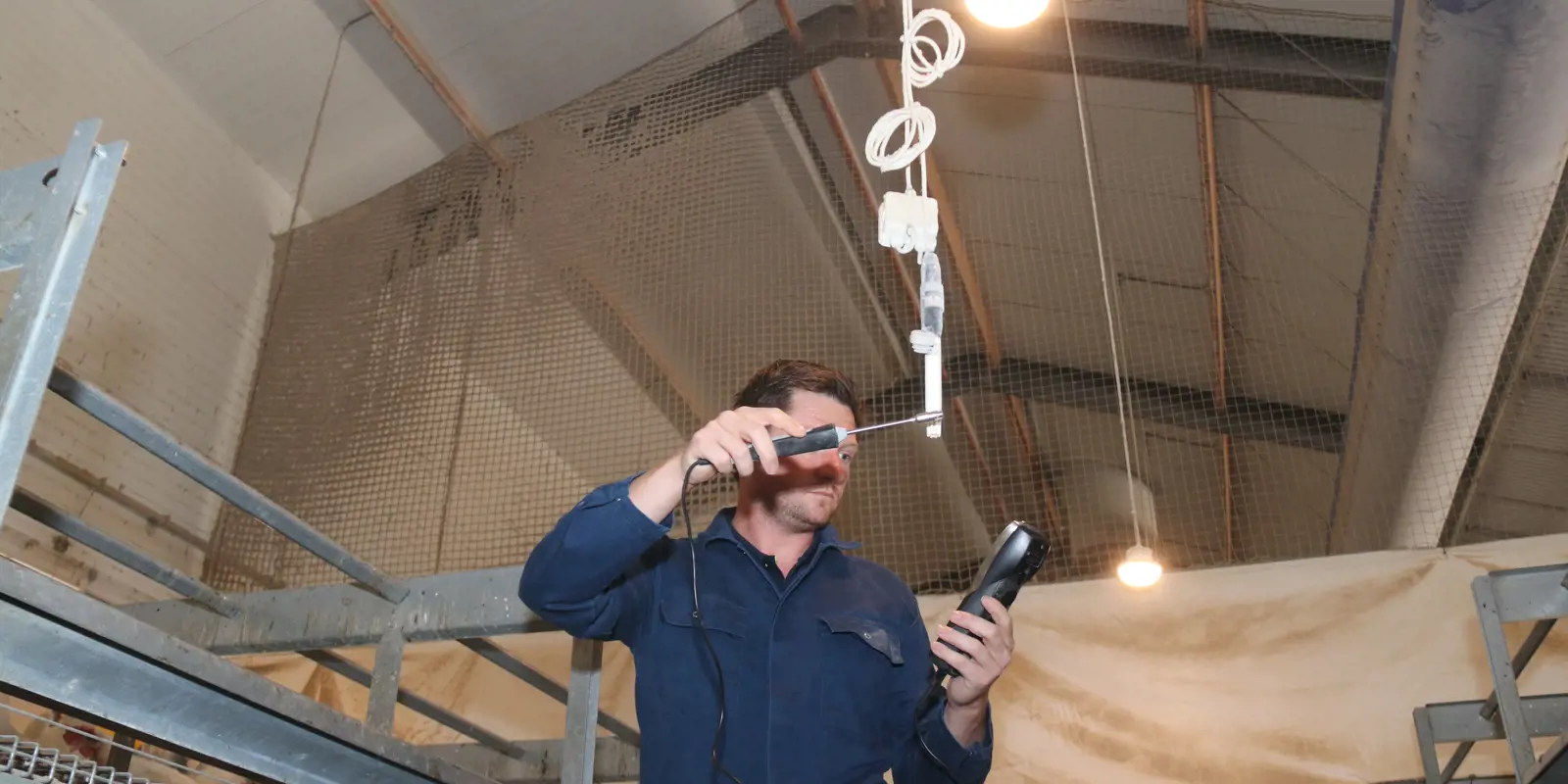 - Verlichting: luxwaarden, lichtintensiteit en lichtverdeling worden gemeten op verschillende plekken in de stal. We noteren ook defecte lampen op de lijst.