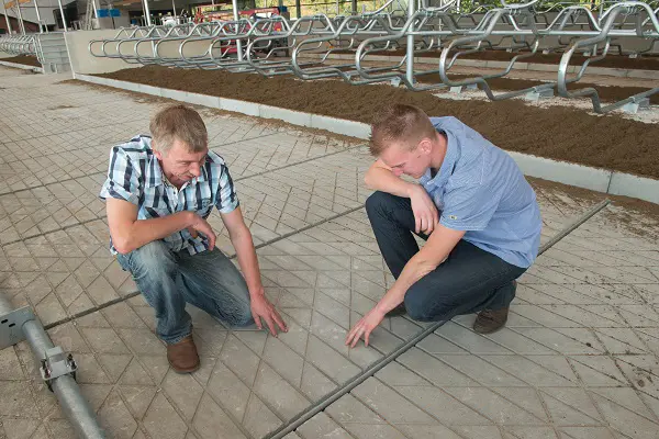 Ervaringen van gebruikers geven aan dat de meeste op de markt zijn de vloeren redelijk tot redelijk goed beloopbaar zijn voor de melkkoeien. Voor een juiste keuze van een vloer adviseren wij u om veel gebruikers van emissiearme vloeren die al meerdere jaren in gebruik zijn te bezoeken en plan dit bezoek aan de stal ook in een warme, droge periode. Neem twee tuinstoelen mee en neem de tijd om het loopgedrag van de melkkoeien te beoordelen of blijf gewoon een uur lang aan het voerhek staan. Maak indien mogelijk ook een video van het loopgedrag en bekijk dit later nog eens als u meerdere vloeren heeft gezien.