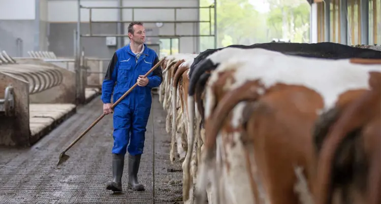 Hij praat liever over zijn nieuwe stal. Bijvoorbeeld over de emissiearme vloer met een rubberen toplaag en kleppen tussen de vloerdelen om de urine snel af te voeren. “Volgens de geleerde heren komt er minder ammoniak vrij. Prima, maar voor de koeien is het rubber belangrijker. Deze vloer is goed voor hun klauwen, de grip is super. Ik heb nog nooit een koe zien uitglijden.”