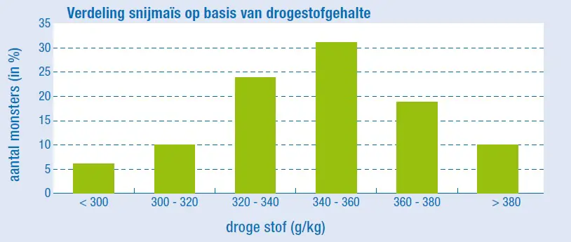Figuur 1: Verdeling snijmaïs op basis van drogestofgehalte
