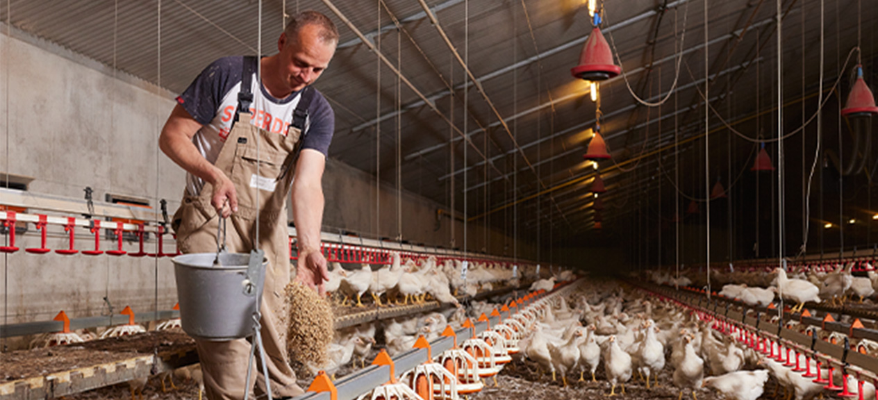 Voor de hele keten is het belangrijk dat de dieren gezond zijn, daarom worden er strenge hygiënemaatregelen op het bedrijf toegepast. Douchen bij het binnenkomen en verlaten van het bedrijf is vanzelfsprekend en netjes werken zorgt voor een optimale bescherming tegen insleep van dierenziekten. Om de dieren gezond te houden, is het ook belangrijk om de stallen en dieren vaak te controleren. Niet alleen de gesteldheid van het dier wordt beoordeeld, maar ook de mestkwaliteit. Het bedrijf van Hans en Ria heeft al jaren geen coccidiose-uitbraak gehad. Er is wel af en toe coccidiose aanwezig op het bedrijf, maar ze zorgen er altijd voor dat de dieren voldoende weerstand hebben. Daardoor blijft het beheersbaar en onder controle.