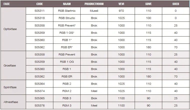 *Deze brokken kunnen zowel in de Opfokfase als in de Groeifase worden gegeven.