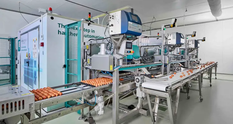 Adri Mertens, operationeel manager bij Vepymo: “In het begin lieten we het geslacht van het kuiken in het broedei elders bepalen via de Seleggt techniek. In 2023 hebben we in onze broederij in Poppel de Ella geslachtsbepalingsmachine in gebruik genomen. Ook deze methode haalt een druppeltje allantoisvloeistof uit het ei dat vervolgens door een massaspectrometer getest wordt op de aanwezigheid van een biomarker. Binnen een seconde wordt het geslacht vastgesteld. Toen we voor de keuze van een methode stonden, wilde de Duitse wetgeving nog naar dag zeven voor de geslachtbepaling gaan. De Ella kon dat al op dag negen en de verwachting was dat deze techniek naar dag zeven zou gaan.”