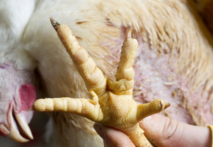 De maximale bezetting in een vleeskuikenstal is 42 kg kuikens per vierkante meter. Dit is volgens de Europese Richtlijn waarop de Nederlandse normen zijn gebaseerd. Vleeskuikenhouders mogen deze hoeveelheid alleen toepassen als ze voldoen aan de welzijnsregels. De uitval moet onder andere lager zijn dan 3,5 procent en er moet een gunstige score zijn voor hakdermatitis (minder dan 15 procent aangetaste hakken). Vanaf 1 januari 2013 wordt de norm voor voetzoollaesies toegevoegd. Deze norm gaat de hakdermatitisscore vervangen. Voetzoollaesies zijn afwijkingen onder de poot (zie kader ‘Wat zijn voetzoollaesies?’). Voor vleeskuikenhouders is de bezetting belangrijk voor een optimaal rendement. Voetzoollaesies gaan hierbij dus een grote rol spelen. Vandaar dat De Heus onderzoek doet naar wat deze nieuwe score in de praktijk gaat betekenen.