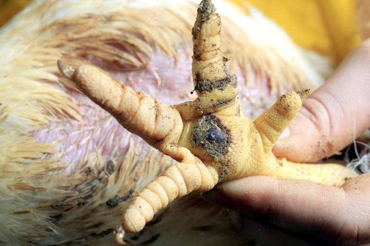Uit deze analyse bleek dat twee derde van de kuikens aangetast is door voetzoollaesies. 38,4 procent van de vleeskuikens heeft ernstige voetzoollaesies. 35,5 procent heeft geen aantasting en 26,1 procent matige (zie grafiek). Het seizoen blijkt een grote rol te spelen. Zomerkoppels hebben minder problemen dan koppels die in maart en december zijn opgezet. Naast de invloed van het seizoen blijkt dat de dierenarts, pluimveehouder, broederij en voerfabrikant in meer of minder mate een rol spelen. Algemeen wordt aangenomen dat de strooiselkwaliteit van belang is. Nat strooisel bevordert het ontstaan van voetzoollaesies.