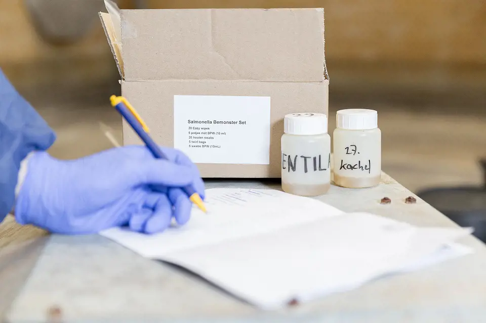 De Heus werkt samen met een onafhankelijk laboratorium. Op die manier kunnen we binnen vier werkdagen, vanaf ontvangst van de monsters, een uitslag geven. Besmette plaatsen kunnen zo snel getraceerd worden en er kan aan de hand van het tijdstip van besmetting een indicatie van de vermoedelijke bron vastgesteld worden.