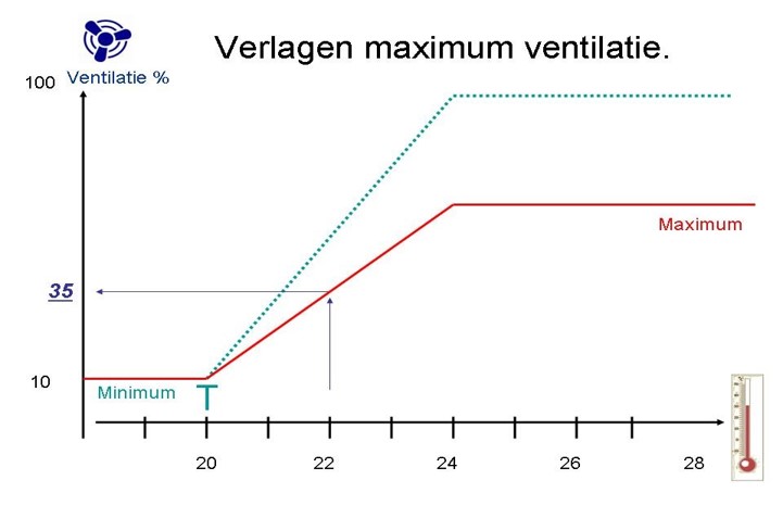 * Beide regelingen hebben een vergelijkbaar resultaat. Afhankelijk van het merk en type klimaatcomputer kan een keuze worden gemaakt tussen beïnvloeding op de bandbreedte of op maximum ventilatie.