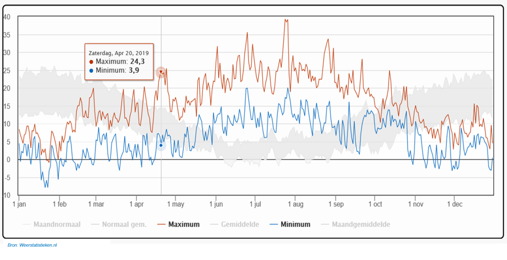 Juist bij grote temperatuurverschillen tussen dag en nacht is een goed werkende klimaatregeling onmisbaar. Met een mooi lentezonnetje kan het overdag zomaar 15-20 ⁰C worden terwijl het ’s nachts en ook ’s ochtends vroeg nog verraderlijk koud kan worden. Nachtvorst is zelfs geen uitzondering. Vergelijkbare temperatuurverschillen kunnen ook in het najaar voorkomen.