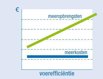 Grafiek 1 Met het verbeteren van de voerefficiëntie verhoogt u de opbrengsten, terwijl de kosten gelijk blijven