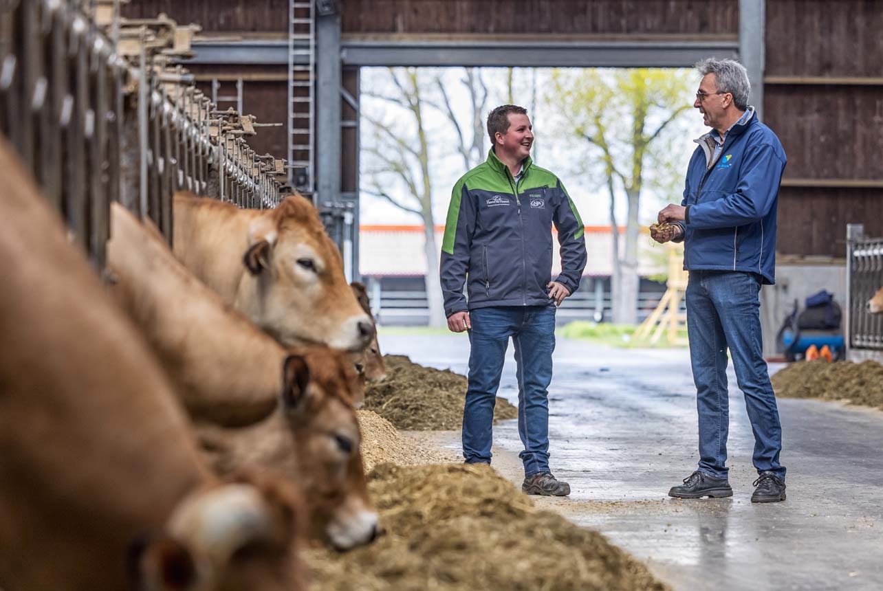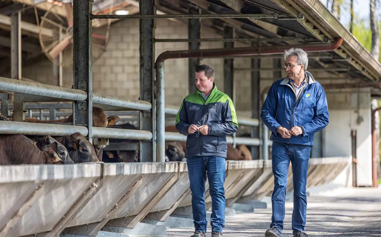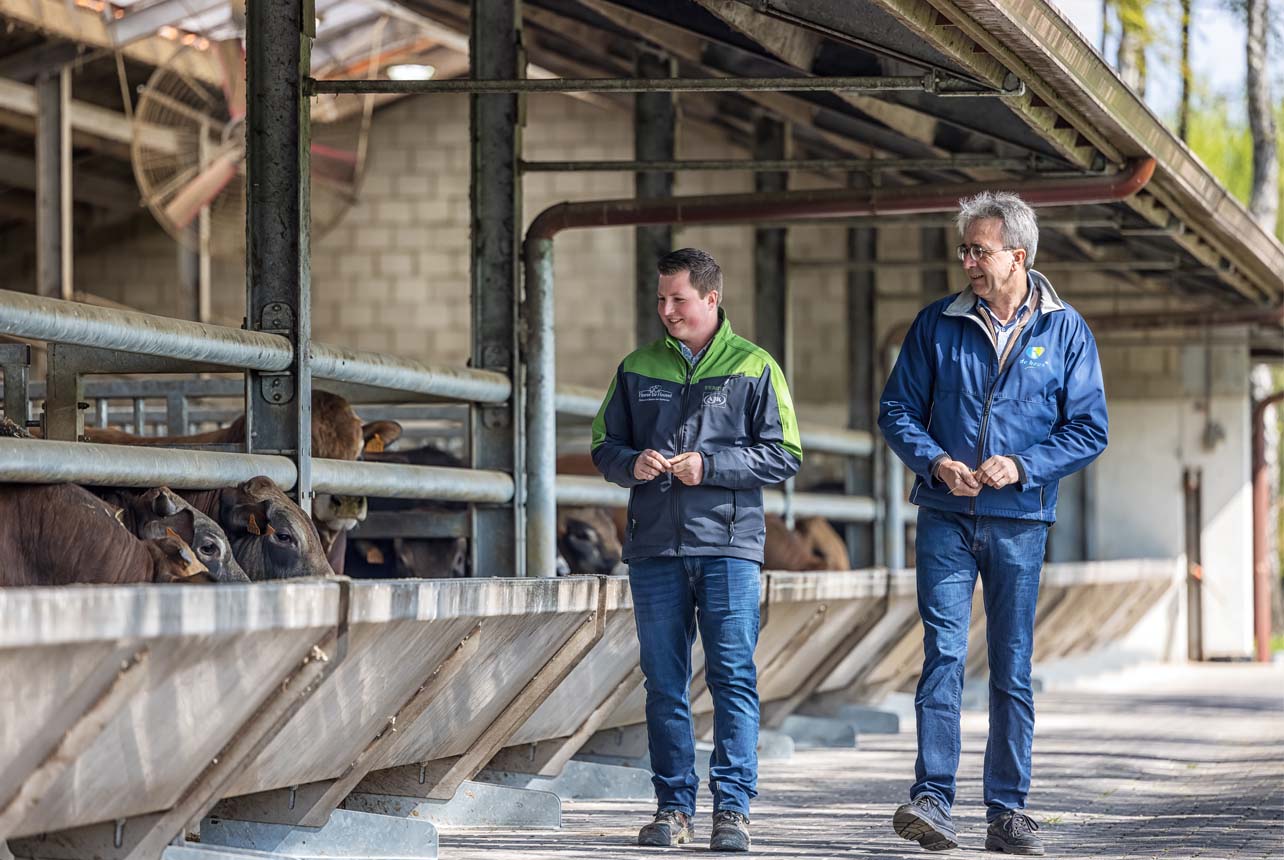 Peter Beliën en Friedo Steensels komen als rundveespecialisten van De Heus vanaf het begin bij Hoeve De Heuvel: “Hoeve De Heuvel doet veel van het veldwerk zelf en heeft een goed netwerk met akkerbouwers in de omgeving en met handelaar Stassen in Dilsen. Daarmee ligt er een solide basis voor dit bedrijf. Waar wij bijvoorbeeld mee hebben geholpen is het samenstellen van een gezond, goed en betaalbaar rantsoen voor de vleesstieren. Die krijgen behalve 60% ruwvoer, ook onze open formule voor vleesvee, wat bestaat uit krachtvoer waaraan ook klantspecifieke ongemalen grondstoffen worden toegevoegd. Ze zijn specifiek gemaakt om de dieren optimaal en vitaal te laten groeien.”