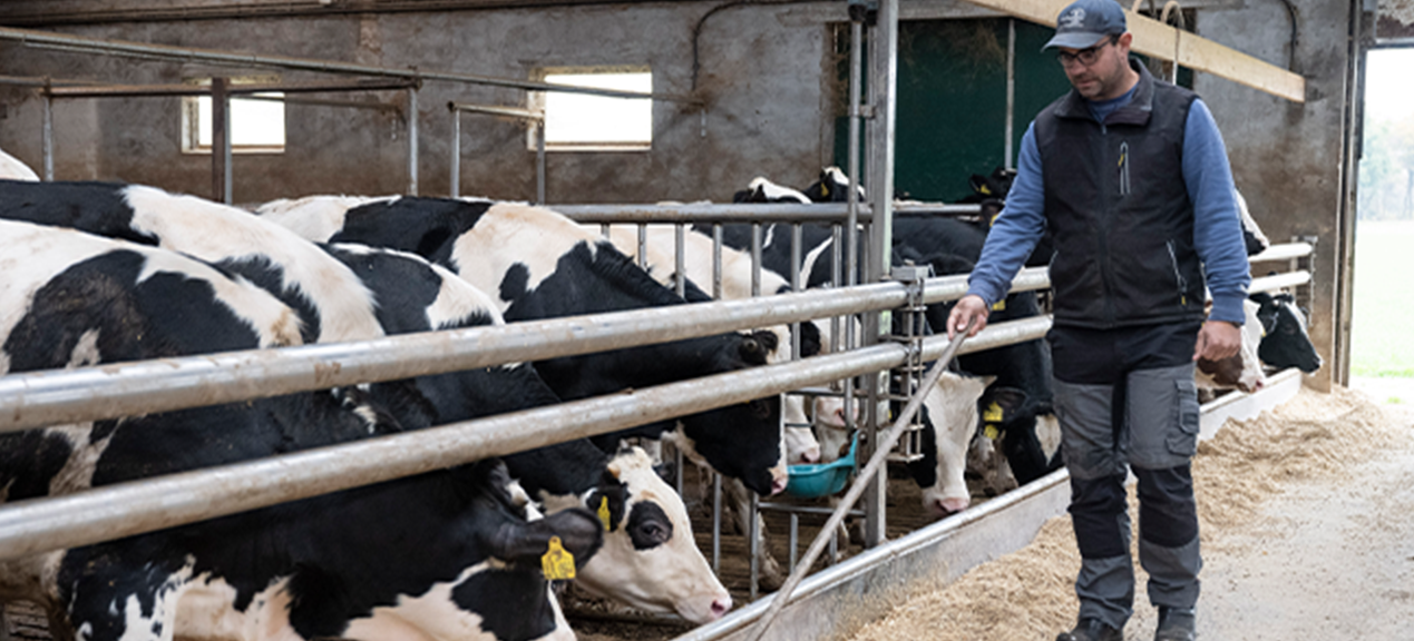 Gerben is altijd bezig met het optimaliseren van zijn bedrijf. Daarbij vindt hij het leuk om te kijken hoe technologie daarbij kan helpen. Zo hebben ze in 2021 bijvoorbeeld een Juno aangeschaft. Een Juno is een aanschuifrobot van Lely. Deze schuift het voer om de vier uur enkele centimeters aan. Gerben ziet daardoor niet alleen een betere voeropname, omdat het voer altijd op tijd aangeschoven wordt, maar merkt ook dat het van hem minder inspanning vergt. Gerben: “In het begin was het wel even puzzelen met Lely om te zorgen dat de Juno overal in de stallen kon komen, maar het loopt nu naar grote tevredenheid.” De stallen zijn nu aangepast en afgestemd op de aanschuifrobot, zonder dat dit ten koste is gegaan van de ventilatie. Wel loopt er nu nog een proef waarbij één gang traditioneel wordt aangeschoven en vergeleken wordt met de Juno.