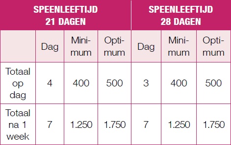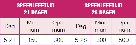 Gewenste voeropname door biggen voor het spenen.