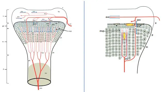 Cecorum zit graag in de botten. Het lijkt erop dat de bacterie vastloopt in de kleine bloedvaatjes bij de groeischijven (zie fi guur 1). Kleine scheurtjes op deze plaats bevorderen het aanslaan van de infectie op deze plaats. Door de kuikentjes voorzichtig uit te laden en ze niet uit de kratten te gooien zal de kans op een infectie verkleinen. Dit zou een van de redenen kunnen zijn dat alternatieve stalconcepten minder problemen met deze bacterie hebben.