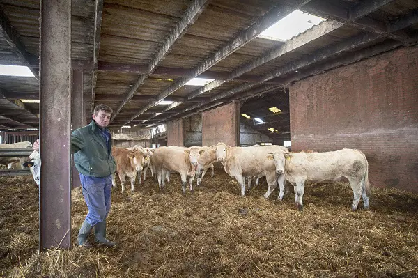 Vleesveehouder Corné Naalden in Etten-Leur streeft naar een hoge groei van zijn luxe vleesvee. ‘Want hoe jonger een dier slachtrijp is, hoe beter de kwaliteit van het vlees is en dat levert mij het meeste rendement op’, weet Naalden na jarenlange ervaring met vleesvee. Hij houdt circa 300 dieren, zowel Belgisch Witblauwen als Blonde d’Aquitaines. Het gros van het vee is op stro gehuisvest en ’s zomers lopen de koeien buiten.‘Dat verbetert het koecomfort en het dierenwelzijn. Als wij goed voor onze dieren zorgen en ze optimaal voeren, blijven ze gezonder en groeien ze beter.’ Ook streeft Naalden zoveel mogelijk een gesloten bedrijfsvoering na en gebruikt hij eigen dekstieren voor een hoge gezondheidsstatus en een goed rendement. ‘Het komt een enkele keer voor dat we toch dieren kopen om aan de vraag van de vleesafnemers te voldoen.’