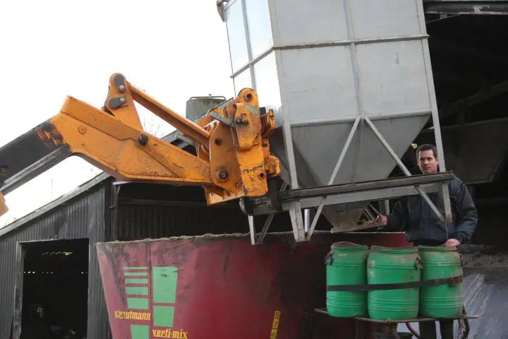 Voor de oudmelkte groep is een apart mineralenmengsel gemaakt, ook weer aangepast aan het rantsoen van deze groep. ‘Ik heb nu slechts twee soorten mineralen voor de melkkoeien’, merkt Homme Dijkstra op. Het gaat om een mengsel voor hoogproductieve dieren en vaarzen en een mengsel voor de oudmelkte dieren. ‘Het gaat allemaal sneller, het geeft minder afval (minder lege zakken) en het werkt veel nauwkeuriger met doseren. En ik hoef niet met zakjes bovenop de voermengwagen te klimmen. Dit is ideaal.’