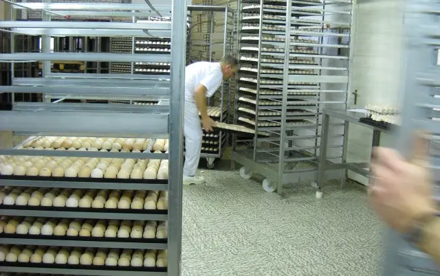 We komen de broederij in en gaan via de personensluis naar de ontvangstruimte voor de broedeieren. Alle broedeieren worden bij binnenkomst eerst ontsmet. Na ontsmetting worden de eieren in de voorbroedkarren over geschoven. Daarna gaan ze naar de voorbroedruimte, waar ze achttien dagen blijven. De voorbroedruimte bestaat uit drie verschillende lokalen: één lokaal met voorbroedmachines van 57.600 eieren, een tweede met machines van 115.200 eieren en een lokaal met machines met een capaciteit van 108.000 eieren. Op dit moment liggen de plannen klaar om de bestaande capaciteit nog wat te vergroten, door er nog een voorbroedruimte bij te bouwen. Van de voorbroedruimtes gaan we naar het overpaklokaal waar de eieren automatisch geschouwd en overgelegd worden in de uitkomstbakken, waarna ze in één van de vier uitkomstlokalen de laatste drie dagen doorbrengen. Na uitkomst worden de kuikens met de hand gesorteerd, automatisch geteld en direct op transportkarren gezet om naar de wachtruimte te gaan. Vanuit de wachtruimte worden ze in de vrachtwagens geplaatst, op weg naar de klant.