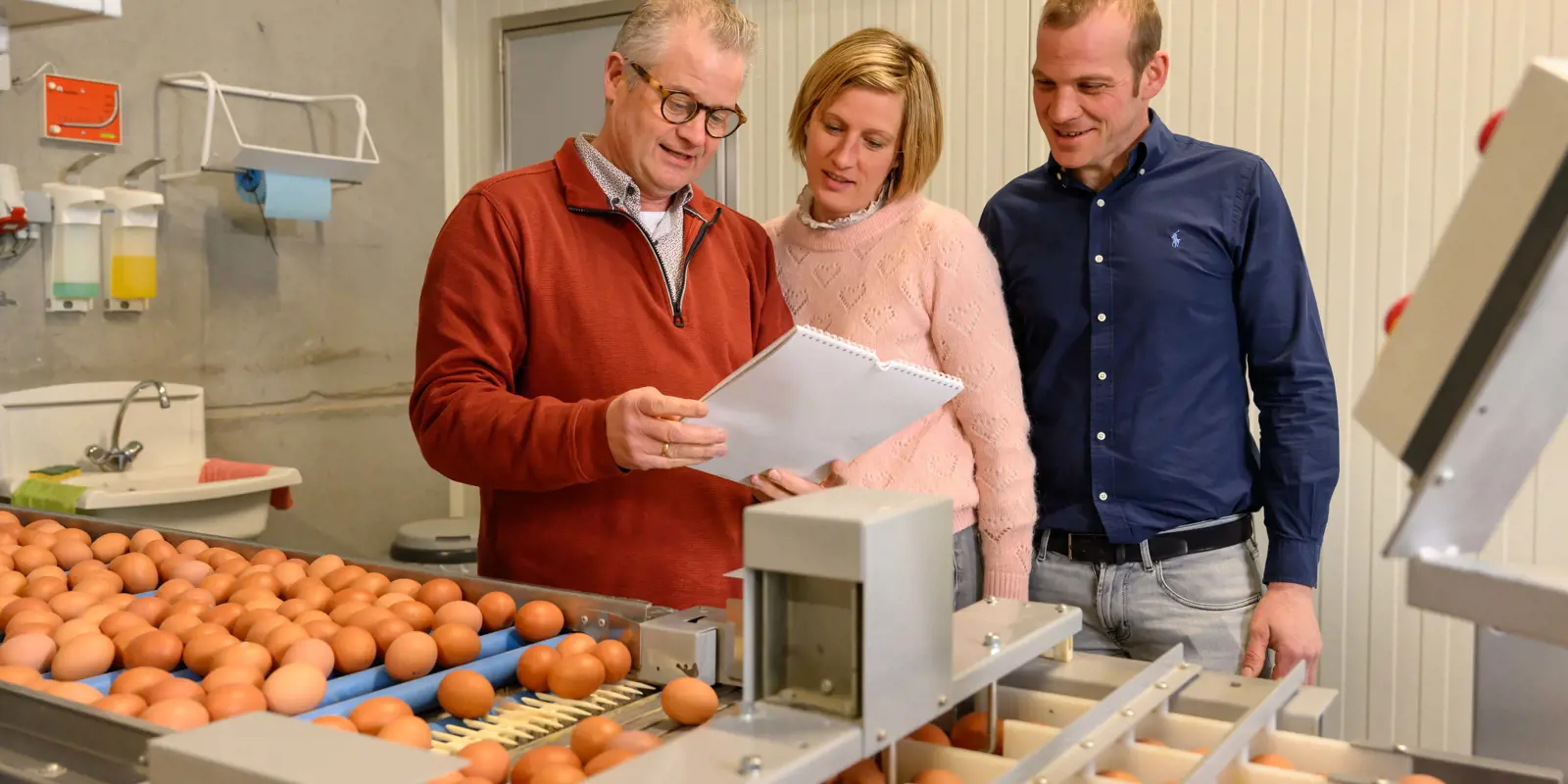 “Gelukkig hebben ze deze en de vorige twee ronden probleemloos gedraaid en behalen ze goede technische resultaten,” vult Krijn hierop aan. “De hennen zijn nu 36 weken. Het lijkt een topronde te worden. Ze hebben het houden van leghennen goed in de vingers. Bovendien zijn ze heel correct in hun werk. Ze lopen vier keer op een dag een ronde door de stal omdat ze niets over het hoofd willen zien. En iedere dag wordt na het eierrapen de inpakruimte schoongemaakt”.