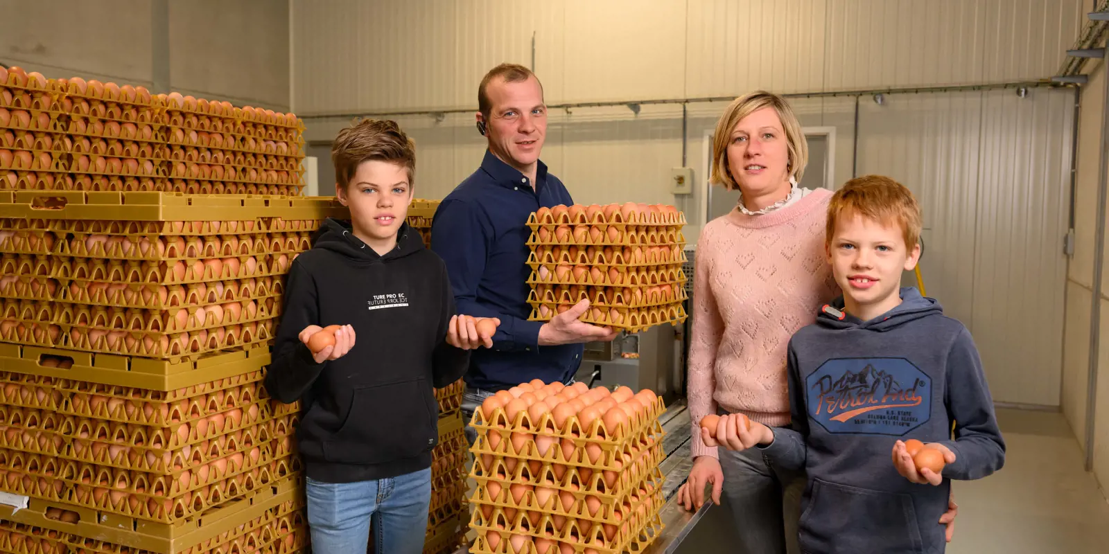 Graag stellen we je voor aan familie Coens-Vandevoorde uit Ruiselede in West-Vlaanderen. Het gezin bestaat uit Sylvie en Willem-Jan en hun twee zonen Marcel (12 jaar) en Maurice (10 jaar). Ze hebben een gemengd bedrijf met 15.000 biologische leghennen, 100 melkkoeien en akkerbouw (mais, gras en aardappelen).
