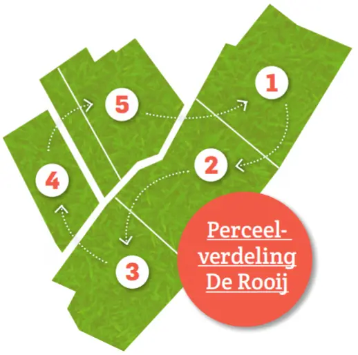 Familie De Rooij heeft in totaal 100 hectare land in gebruik, waarvan ongeveer 50 hectare in eigendom. Voor beweiding van de melkkoeien wordt de huiskavel van zo’n 22 hectare gebruikt, begrensd door de Linge, het dorp en de spoorlijn van Utrecht naar Tiel. “Wij zijn één van de voorlopers van het Nieuw Nederlands Weiden. Bijzonder in onze situatie is dat we een één-bloksysteem gebruiken met vijf percelen, waarbij het koppel iedere dag op een ander perceel staat. Zo roteren de koeien over de vijf percelen. Dat is het kenmerk van het Nieuw Nederlands Weiden. Omgerekend lopen er dan zo’n zeven koeien per hectare beweiding op het totale weideplatform. Een twee-bloks-systeem zou bij ons niet lukken, vanwege het formaat van onze huiskavel en het aantal koeien. De één-bloks-variant past ons goed en blijkt makkelijk uitvoerbaar.”