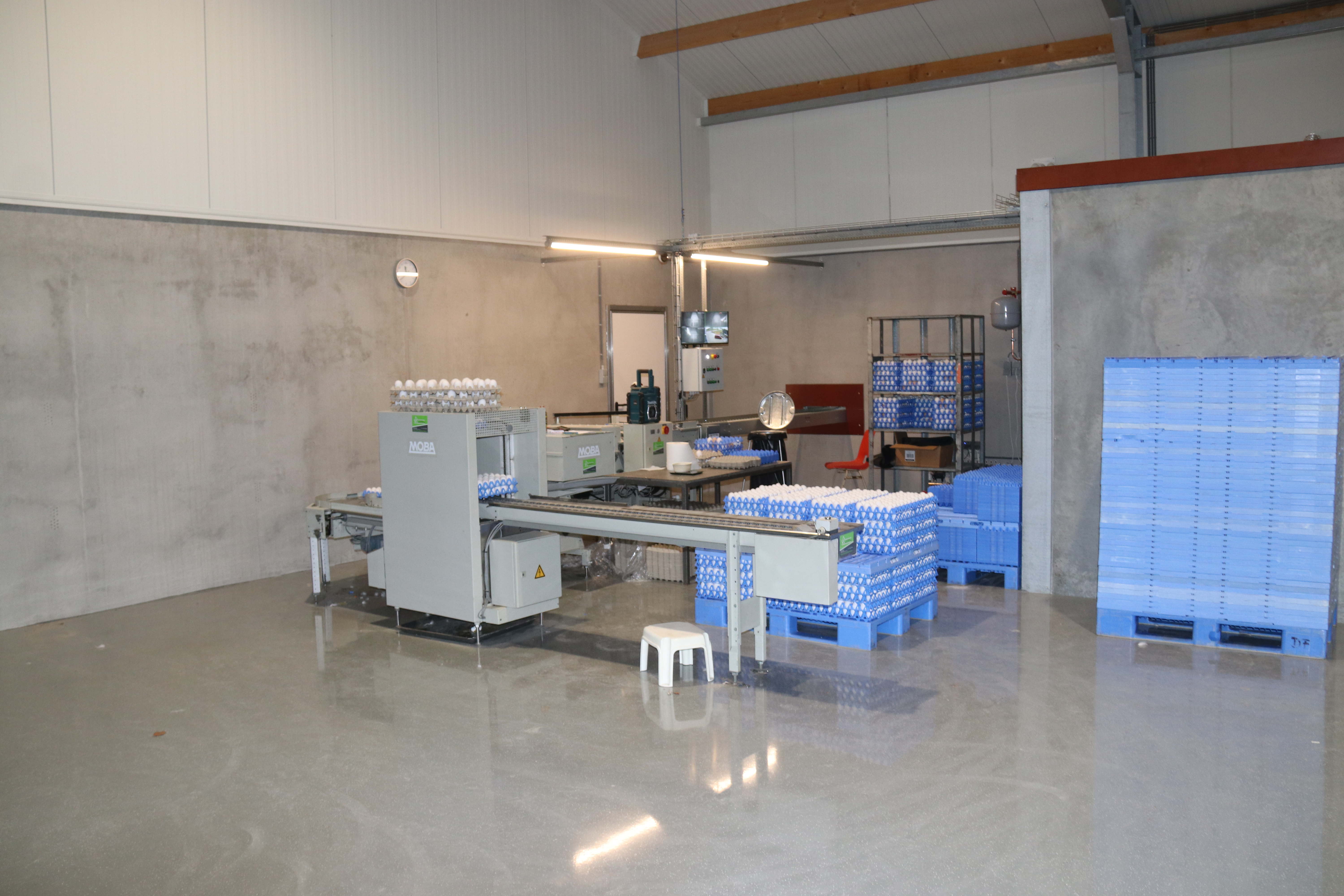 Elke stal heeft een eigen inpakker op het bedrijf omdat ze biologische-, scharrel- en vrije uitloopeieren leveren. “Gelijktijdig eieren rapen is hierdoor mogelijk en dat gaat lekker vlot. Bovendien zit er veel ruimte tussen de stallen waardoor we met lange eierbanden zouden moeten werken. Dat vergt veel onderhoud. Nu kunnen we ook makkelijk onderhoud plegen aan een inpakker als er een stal leeg staat,” zegt Arjan.