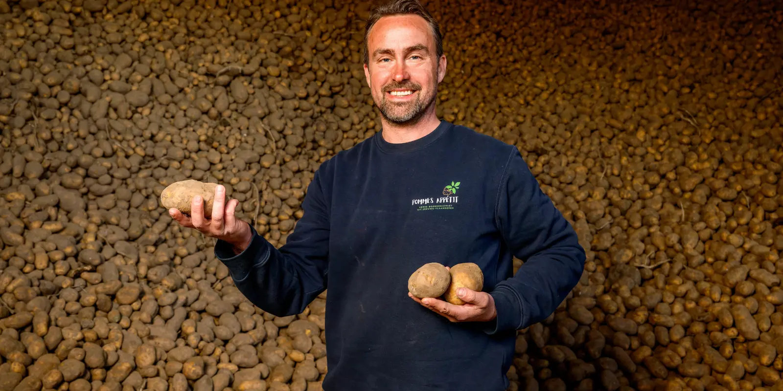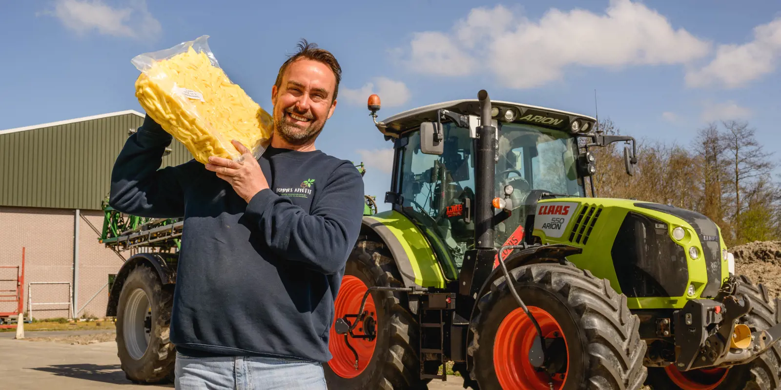 Graag stellen we je voor aan Marijn Uitdewilligen uit het Zeeuwse plaatsje Sint-Kruis. Ruim elf jaar geleden nam hij het bedrijf van zijn ouders over. Samen met zijn vrouw Katrien runt hij een landbouwbedrijf, bestaande uit 75.000 1 ster Beter Leven-kuikens en akkerbouw. Sinds kort produceren en verkopen ze ook hun eigen boerderijfriet. Marijn: “De aardappelteelt zit al generaties in de familie. Ik ben de vierde generatie. Aardappelen zijn altijd een vast onderdeel van ons bouwplan geweest en waar mogelijk hebben we dat uitgebreid.” Het idee om zelf verse friet te maken ontstond tijdens de coronaperiode. “In 2020 stond de aardappelprijs op 2,5 cent. Toen zei ik tegen mijn vrouw: ‘We moeten iets anders proberen.’” Ze begonnen kleinschalig met een eenvoudige verwerkingslijn, en dat sloeg meteen aan. “Binnen de kortste keren belden restaurants uit de buurt: ‘Wij willen jullie friet graag kopen!’”